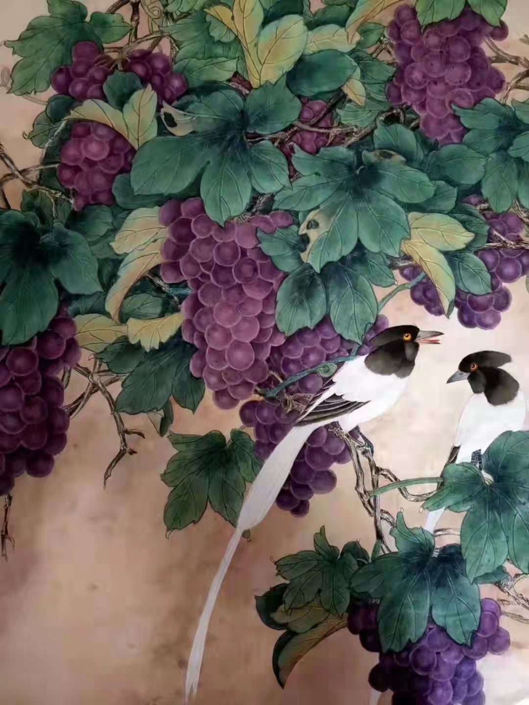 今天,我妈在家族群里又发了新画的照片,一幅葡萄,照例一片赞,表弟表妹堂弟堂妹们纷纷表示,疫情结束后,请大姨/大妈/大姑送画送真的葡萄。